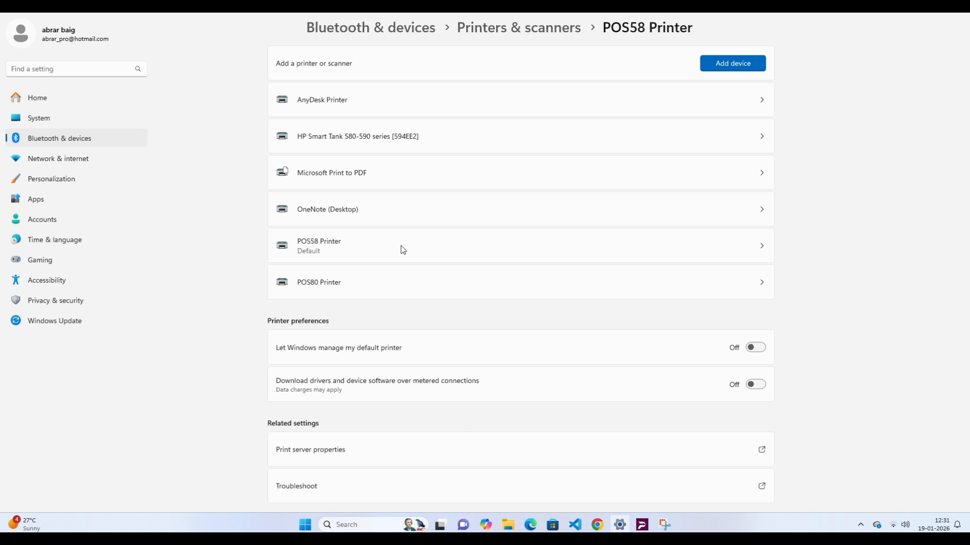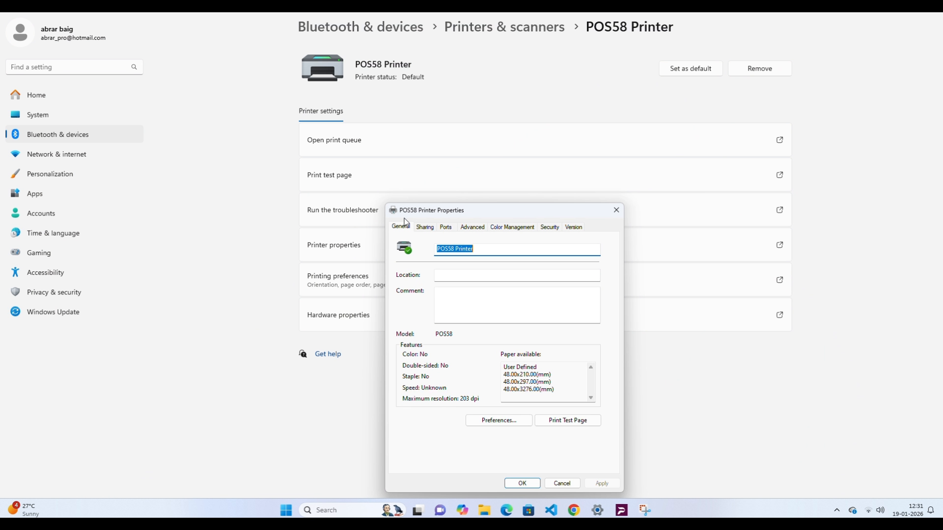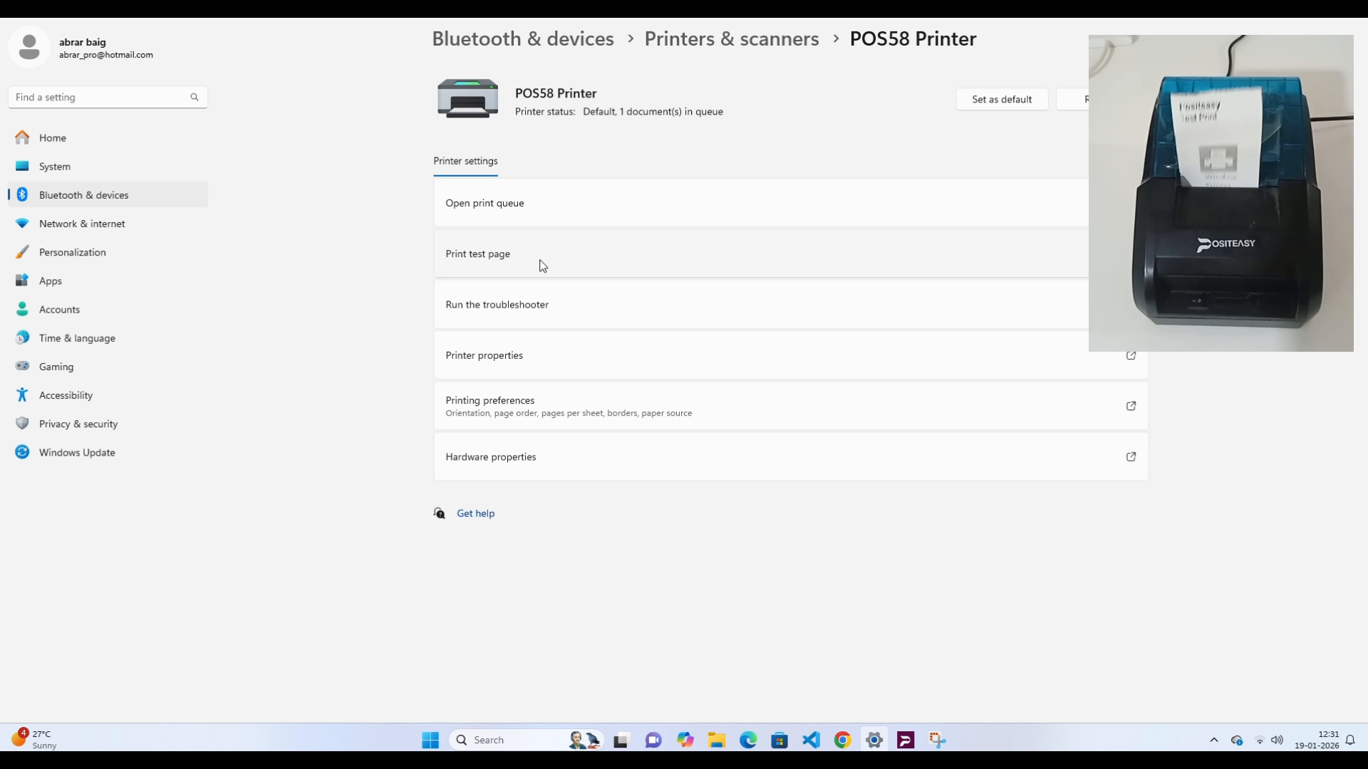 Select your newly installed printer (for example, POS58 Printer), and then select Print test page.