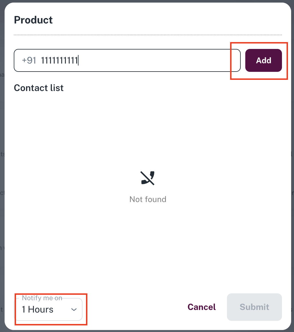 - Contact Numbers அறிவிப்பு பெற வேண்டிய WhatsApp எண்கள் (91 country code தானாக சேர்க்கப்படும்)