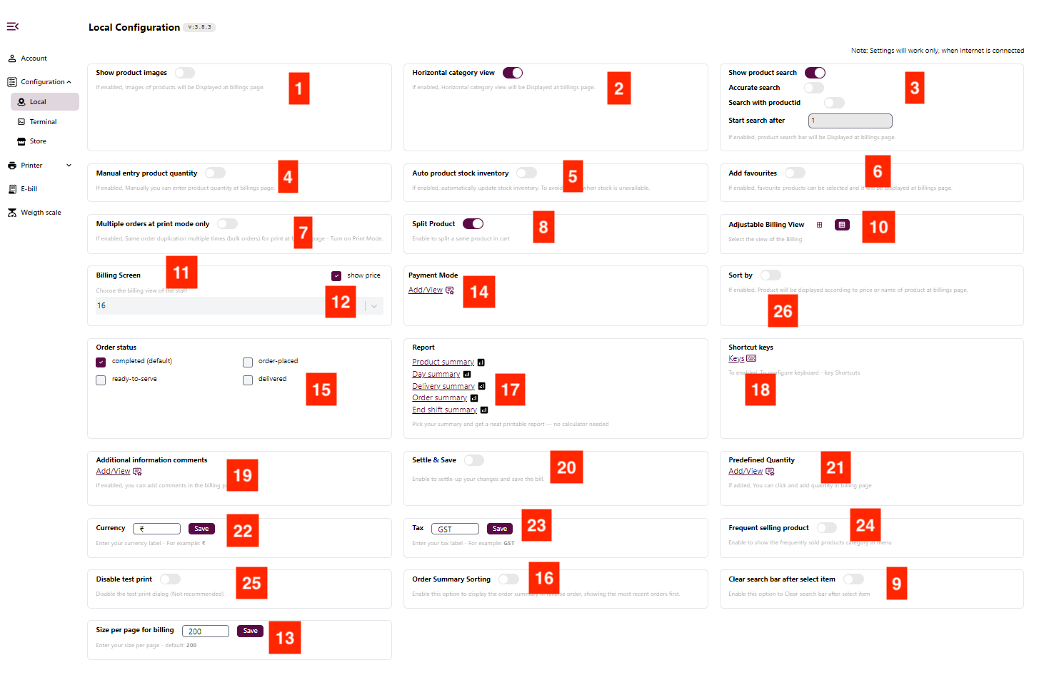 3Show product searchIf enabled, a search bar for products will be displayed on the billing page.