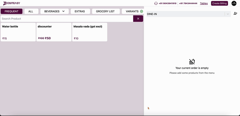 10Adjustable Billing ViewChoose between a Big Grid (4 products in a row) or Small Grid (3 products in a row) view for products on the billing screen.