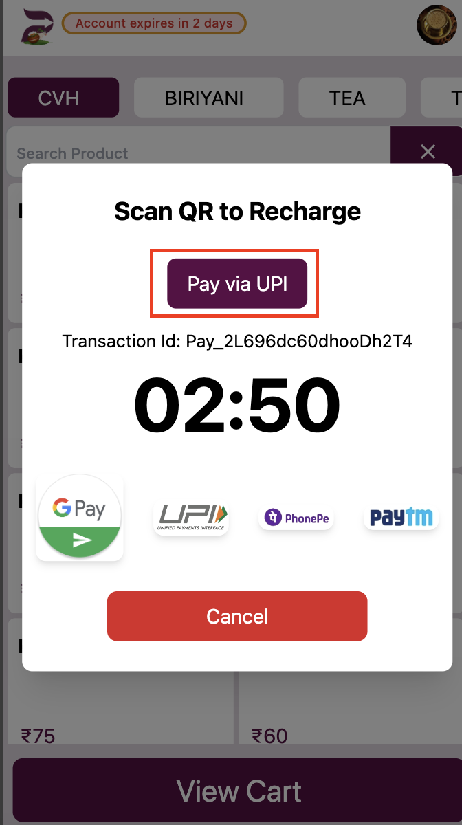 - Pay via UPI என்பதை தட்டவும்.